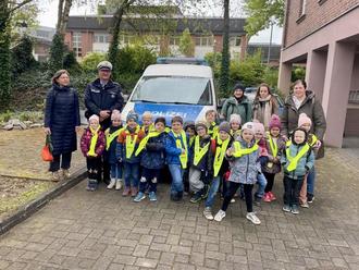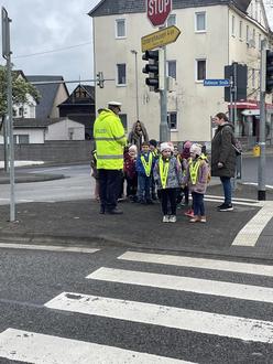 Am 24.04.2024 haben wir gemeinsam einen Ausflug zur Polizei nach Montabaur gemacht. Zunächst sind wir mit dem Bus von Ransbach -Baumbach an den Konrad-Adenauer-Platz in Montabaur gefahren. Dort wurden wir bereits von dem Polizisten Herrn Hommrich erwartet. Nun ging es zu Fuß zur Polizeistation. Auf dem Weg haben wir das korrekte Überqueren von Straßen an einer Ampelanlage, an einem Zebrastreifen und durch das Ausstrecken einer Hand geübt.