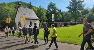 An Muttertag fand wie immer die traditionelle Schönstattwallfahrt der Kirchorte Baumbach, Höhr-Grenzhausen und Hillscheid statt, zu der sich auch Gläubige aus anderen Kirchorten unserer Pfarrei auf den Weg machten. Der Musikverein Ransbach-Baumbach unterstützte auch diesmal wieder die Baumbacher Pilgergruppe musikalisch und die Feuerwehr Ransbach-Baumbach sorgte für die Sicherheit. Ausdrücklich wurde -wie jedes Jahr- für die weitgehende Bewahrung während des Krieges gedankt. Ein großes Gebetsanliegen unterwegs war der Friede in der Ukraine und dem Nahen Osten, aber auch der in unseren Familien. Am Urheiligtum wurden beide Wallfahrtsgruppen herzlich von Pater Ignacio begrüßt und Maria nochmals als Fürsprecherin angerufen. Mit Weihbischof Dominik Schwaderlapp und Pfarrer Xavier Manickathan feierten alle Pilger dann zusammen die Eucharistiefeier.