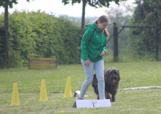 In entspannter Atmosphäre ging es für 3 Mitglieder des HSV Ransbach-Baumbach e.V. an den Start. Den Auftakt machte Ronja Nengelken mit Bordercollie-Großpudelmix „Loki“ in der Klasse der Beginner (Jugend). Hing Loki sonst im Parcours dezent nach, folgte er diesmal Frauchen auf Schritt und Tritt. Selbst in der „Kreisspirale“ klebte Loki regelrecht an Ronja´s Bein. Auch bei der Station „Hund umrunden“ saß Loki wie eine eins. Wollte sonst die ein oder andere Pfote nicht ganz so stillhalten, blieb er hier mit allen vier Pfoten fest auf dem Boden. Damit erreichte das Team 98 Punkte in der Jugendwertung. Das bedeutet mit einer Zeit von 2:38 Minuten Platz 1 (Jugend). Mit der Bewertung „vorzüglich“ (90