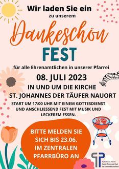 Herzliche Einladung zum Dankeschön-Fest für alle Ehrenamtlichen in unserer Pfarrei: Samstag, 08. Juli 2023 in und um die Kirche St. Johannes der Täufer Nauort