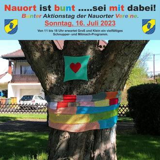 Das nahmen die Frauen der Kreativgruppe Lichtblick-Miteinander in Nauort wörtlich. Sie wollten etwas Besonderes zum Bunten Aktionstag der Nauorter Vereine am 16. Juli beitragen und beschlossen das Dorf mit ihren Strick- und Häkelkünsten zu verschönern. So entstanden in den letzten Wochen zahlreiche bunte Werke, die nun an Bäumen und Bänken im Dorf zu bewundern sind. Es gibt gestrickte Blumen, Herzen und sogar Wesen die Bäume umarmen oder aus der Baumkrone hervorlugen. Besonders hervorzuheben ist, das „COM NIT“, das am Baum des Apothekenparkplatzes hängt, um den hässlichen CovidVirus abzuwehren. Jedes Werk ist ein Unikat und wurde mit viel Liebe zum Detail gestaltet.