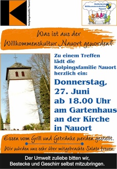 Die Kolpingfamlie Nauort lädt ein zu einer Begegnung mit Flüchtlingen, die von 2015 - 2019 durch den Helferkreis „Willkommenskultur“ betreut wurden