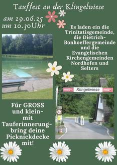 10.30 Uhr Tauffest im Nachbarschaftsraum an/in der Klingelwiese