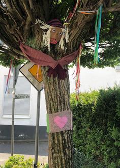 Die Frauen der Kreativgruppe Lichtblick-Miteinander in Nauort wollten etwas Besonderes zum Bunten Aktionstag der Nauorter Vereine am 16. Juli beitragen. Die Strick- und Häkelnadeln wurden geschärft und es ging los. So entstanden in den letzten Wochen zahlreiche bunte Werke, die nun an Bäumen und Bänken im Dorf zu bewundern sind. Es gibt gestrickte Blumen, Herzen und sogar Wesen die Bäume umarmen oder aus der Baumkrone hervorlugen. Jedes Werk ist ein Unikat und wurde mit viel Liebe zum Detail gestaltet.