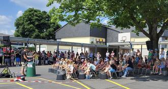 Zu Beginn gab es fast wörtlich einen Paukenschlag, denn der professionelle Drummer, Alexander Sauerländer, begrüßte die Zuschauer mit einer Trashdrumm-Vorführung mit den Klassen 3a und 3b. Danach leitete Schulleiter Peter Wanschura direkt über zum Kids-Programm, denn insgesamt 17 Aktiv-Stationen, von Entenangeln, über Gemüsememory bis hin zum „Heißen Draht“, konnte von den Kindern ausprobiert, erforscht oder einfach bespielt werden.