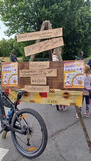 Geboten wurde ein Holzsägewettbewerb und ein Radrennen um die weiteste Strecke in einer Minute. Die Gewinner*innen wurden mit einem Vogelfutterhaus und Nistkästen, gebaut von Günter, belohnt.