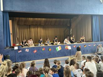 In der vergangenen Woche fand an der Grundschule Haiderbach eine spannende Projektwoche zum Thema "Europa" statt. Die Schülerinnen und Schüler der Klassen 1-4 konnten aus unterschiedlichen Projektangeboten ein Angebot auswählen, das dann in klassenübergreifenden Gruppen täglich 3 Stunden durchgeführt wurde. So gab es verschiedene europäische Länder ( Frankreich, Schweden, Niederlande, Großbritannien) mit ihren Besonderheiten und Sehenswürdigkeiten zu erkunden. Die Kinder lernten landestypische Gerichte kennen und durften diese auch selbst zubereiten. Des Weiteren gab es ein Europäisches Sprachlabor, in dem die Schüler an I-Pads u.a. ein Kahoot-Quiz erstellten. Musik und Kunst spielten ebenfalls eine wichtige Rolle in der Projektwoche. Die Kinder lernten Hymnen, Lieder und Tänze aus verschiedenen europäischen Ländern kennen. Es wurde viel gesungen und getanzt, die Europahymne wurde auf Instrumenten gespielt. Weiterhin gestalteten die Kinder künstlerische Werke, inspiriert von berühmten europäischen Künstlern wie Vincent Van Gogh oder Franz Marc. Passend zur Fußball-Europameisterschaft gab es auch eine Projektgruppe, die sich mit der Fußball- EM beschäftigte und sich selbst natürlich auch sportlich betätigte. Höhepunkt der Woche war das Schulfest am Freitag, bei dem die Schülerinnen und Schüler stolz ihre Erlebnisse und Ergebnisse der Woche präsentierten. Es gab u.a. diverse Ausstellungen, musikalische Vorführungen, Spiele und Mitmachangebote. Unter der tatkräftigen Unterstützung der SpVgg Haiderbach bestand zudem die Möglichkeit, das DFB- Fußballabzeichen zu erwerben. Eltern, Lehrer und Mitschüler waren beeindruckt von den vielfältigen Ergebnissen und dem Engagement der Kinder. Ein wirklich gelungener Abschluss einer schönen Woche. Vielen Dank auch an alle Eltern, die durch Kuchenspenden oder als Helfer zum Gelingen dieses Festes beigetragen haben.