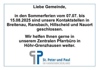 In den Sommerferien vom 07.07.-15.08.2025 sind die Kontaktstellen geschlossen.
