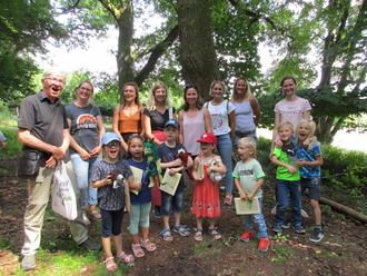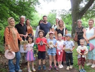 Im Rahmen des Programms FiPP- Familien in Peter und Paul starteten die beiden Kitas St. Antonius und St. Markus in Zusammenarbeit mit Peter Lüke aus Hundsdorf einen Erzählspaziergang am Wald in Ransbach-Baumbach. Herr Lüke ist Hobby-Buchautor und brachte seine eigene Geschichte von Luana der Baumelfe mit. Frau Lüke unterstützt ihren Mann sowohl in der Ausführung als auch in der Vorbereitung und so brachte das Ehepaar wunderschöne, selbstgehäkelte Figuren mit, die die Kinder beim Erzählen fesselten. Unterwegs gab es viel zu entdecken, z. B. Frau Eule, die sich im Baum versteckte oder die Füchsin, die es auf das Eichhörnchen Wirbelwusch abgesehen hatte.