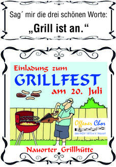 Der Vorstand des Offenen Chores des MGV 1875 e.V. Nauort lädt alle aktiven und passiven Mitglieder, Witwen sowie seine Ehrenmitglieder zum Grillfest 2024 ein. Am Samstag, 20.07.2024 verbringen wir bei hoffentlich schönem Wetter ein paar gemütliche Stunden in der Grillhütte Nauort.