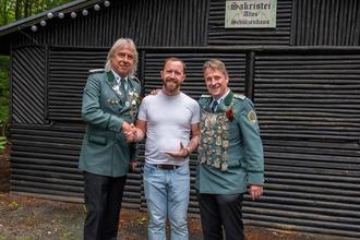 (vlnr: 2. Vorsitzender Dietmar Kessler, Bürgerkönig Cornelius Arndt, Schützenkönig Jörg Heuser)