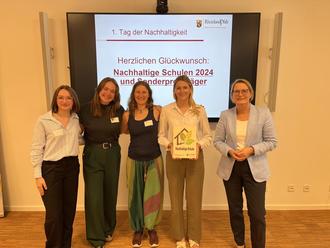 Außerdem machte sich das Nachhaltigkeitsteam, gebildet aus den Kolleginnen Frau Esch, Frau Glöckner und Frau Weiler, auf Weg, die Präsentation für die Bewerbungsphase beim Bildungsministerium Rheinland-Pfalz zu erstellen. Mülltrennung, recyceltes Kopier- und Toilettenpapier, der Schulgemüsegarten oder der Lichtdienst in den Klassen stellen nur wenige Eckpfeiler der Inhalte für die Bewerbung zur „Nachhaltigen Schule“ dar. Aufgeregt durfte das Nachhaltigkeitsteam am Montag, den 08.07.2024, nach Mainz fahren, um das Zertifikat zur „Nachhaltigen Schule“ für die Grundschule Nauort, überreicht von Bildungsministerin Stefanie Hubig, in Empfang zu nehmen. Die Reise zum Thema Nachhaltigkeit ist aber damit noch nicht beendet, denn die Kinder der Grundschule Nauort wollen mit dem Schülerrat weiterhin am Ball bleiben.