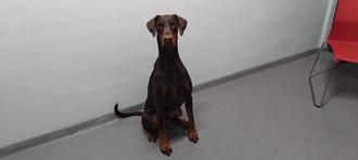 Unser hübscher Dobermann Amor ist ein freundlicher Hund, der sich gerne stürmisch und überschwänglich freut.
