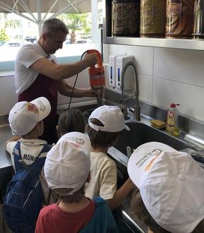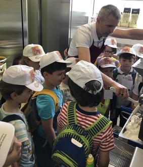 Er zeigte den Kindern die großen Eismaschinen und sie konnten beobachten, wie die Zutaten zu Eis wurden. Es wurden verschiedene Eissorten hergestellt und die Wartezeit wurde uns mit einem leckeren Eis versüßt. Wir bedanken uns bei dem Besitzer des Eiscafés für seine gelassenen Erklärungen und die Kinder kommen sicher auch mit ihren Familien gerne wieder.