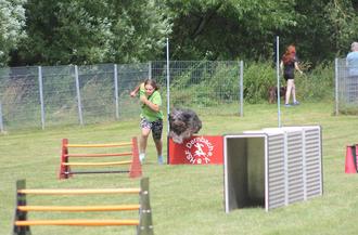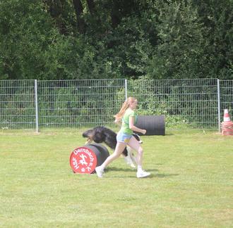 Am Sonntag, den 16.07.2023 waren die Turnierhundesportler (THS) des Hundesportverein Ransbach-Baumbach e.V. zu Gast bei den Hundesportfreunden Dernbach e.V. Es ging direkt um 08:30 Uhr los mit dem Combination-Speed-Cup (CSC). Die drei Starter, Silke Pook-Sesterhenn mit Golden Retriever Hündin „Charlotte“, Franziska Dudeck (Jugend) mit Australian Shepherd „Ivar“ und Lotta Nengelken (Jugend) mit Bordercollie- Großpudelmix „Loki“ zogen ihre Etappen mit entsprechendem Speed durch und erreichten Platz 3. Im Geländelauf war F. Dudeck mit Australian Shepherd „Bea“ für die 1 km Strecke gemeldet und schaffte es mit 5:40 Minuten auf Platz 1. L.Nengelken war mit amerikanischem Collie- Großpudelmix „Leo“ für 2 km gemeldet und schaffte diese in 10:13 Minuten. Ebenfalls Platz 1. In der Disziplin Vierkampf (VK) startete F. Dudeck mit „Ivar“ in der Leistungsklasse (LK) 1. Vergisst Frauchen die Grundstellung, kennt sich auch der Hund nicht mehr aus. Leicht irritiert, arbeiteten sich die zwei durch die Unterordnung (UO). Doch so recht klappen wollte es an diesem Tag nicht. 35 Punkte gab es für die UO. Umso mehr Schwung kam dann in die zwei bei den weiteren Disziplinen des VK‘s bei Hürdenlauf, Slalom und Hindernislauf. Da lief es wieder runder, 208 Punkte insgesamt im VK 1, 2 Platz. Ebenfalls im VK 1 startete Kathrin Goeth mit Australian Shepherd „Torvi“. Torvi brauchte viel Futterhilfe in der UO. Das führte zu 43 Punkten. In den weiteren 3 Disziplinen des VK wurde es auch bei diesem Duo zu Beginn deutlich besser und fehlerfrei, wirkte jedoch Torvi im Hindernislauf unmotiviert und schlapp, irgendwie k.o. Somit erreichten sie dennoch 206 Punkte gesamt, Platz 1. Ob es dem Wetter oder dem zahnenden Familienzuwachs im Hintergrund verschuldet war, bleibt Spekulation. Hunde sind eben keine Maschinen.