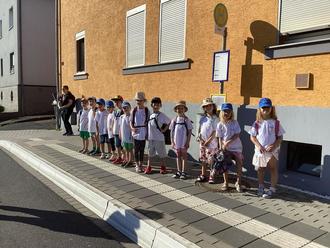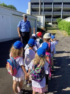 Unsere Vorschulkinder „Die lustigen Eulen“ haben sich am 13. Juni 2023 mit dem öffentlichen Bus auf den Weg zur Polizeiinspektion Montabaur gemacht. Dort angekommen, wurden die Kinder von dem Polizisten Hommrich in Empfang genommen und haben auf dem Weg zur Polizei gelernt, wie man einen Fußgängerweg oder eine Kreuzung überquert. Auf der Wache hat Herr Hommrich den Kindern gezeigt womit ein Polizist ausgestattet ist und welche Aufgaben Polizisten haben. Anschließend durften die Kinder einen Blick in die Wache und die Zellen werfen. Kurz bevor der Heimweg angetreten wurde, durften sich alle Kinder in das größte Polizeiauto setzen, welches die Polizei Montabaur hat. Als Highlight wurden Blaulicht und Sirene angemacht.