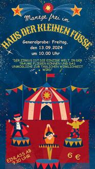 in der städtischen Kindertagesstätte „Haus der kleinen Füße“ findet erstmals vom 09.09 - 14.09.2024 ein Zirkusprojekt für die Kinder statt, das von ausgebildeten Zirkuspädagogen und den Erzieherinnen der KiTa begleitet wird.