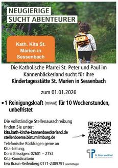 Wallfahrt nach Kamp-Bornhofen am So, 31.08.25. Unter dem Motto „Mit Maria Pilgerin und Pilger der Hoffnung sein“ (Nauort/ Stromberg/ Hillscheid/ Pfarrei) Wir gehen in diesem Jahr wieder gemeinsam auf Tour. In diesem Jahr fahren wir mit einem Bus und mit dem Rad zum Wallfahrtsort Bornhofen. Die Abfahrtszeiten des Busses an den jeweiligen Orten sind wie folgt: Bus: 08:30 Uhr Stromberg/ 08:40 Uhr Caan (Ortsausgang)/ 08:40 Uhr Nauort/ 9:10 Uhr Höhr - Grenzhausen (Goethe-Schule)/ 09:30 Uhr Hillscheid. Wir laden herzlich ein zum Beten und Singen um 11:15 Uhr in der Pilgermesse, um 14:30 Uhr in der Andacht in Kamp-Bornhofen. Infos: Maria Petmecky Tel. 02624-2965, Dorothee Dörschel, Sonja Perk Tel. 0177-3780949; Fahrradgruppe: Stephan Schnelle Tel. 0175 9353181.
