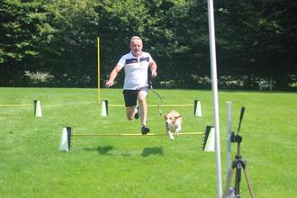 Schon früh herrschte rege Betriebsamkeit auf dem Vereinsgelände des Hundesportverein Ra-Ba e.V. Es sollte ein sonniger und heißer Sonntag werden. Als die Nebelschwaden sich verzogen und der Sonne den Vortritt überließen, waren die Teilnehmer der Vorprüfung beim Verkehrsteil (Teil A) schon flott unterwegs. Während Sascha Lahnstein mit Mischling „Lola“ schon fertig war, ging es für Silke Pook-Sesterhenn mit Flat Coated Retriever „Caroline“ noch auf den Platz, um Prüfungsteil B der Vorprüfung zu absolvieren. Als dort noch gejubelt wurde, machte sich der Rest schon auf den Weg zum Geländelauf (2 u. 5 km wahlweise). Mit von der Partie waren an diesem Tag u.a. HSF Dernbach, HSF Greimersburg e.V.,HSV Simmer/WW e.V., BPHV Bonn/Mitte 1919 e.V., MV PHV Essen e.V., HSF Sinzig e.V..Im Geländelauf glänzte die Jugend des HSV Ra-Ba auf 2 km mit Lotta Nengelken mit amerik. Collie Großpudelmix „Leo“ auf Platz 1 in 10:44 Min. Platz 2 belegte Franziska Dudeck mit Australian Shepherd „Torvi“ in 13:36 Min.
