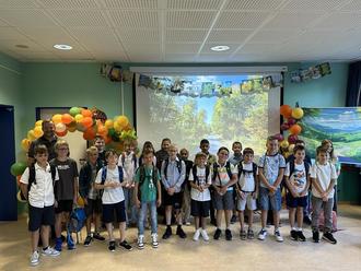 Nach den offiziellen Programmpunkten wurde es für die Kinder besonders spannend: Das erste Klassenfoto wurde aufgenommen, bevor sie gemeinsam mit ihren neuen Klassenlehrkräften – Herr Becker (5a), Herr Blasius (5b) und Frau Sieber (5c) – in die Klassenräume gingen und dort ihre allererste Stunde an der EKS erlebten.