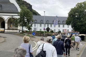 „Gemütlich“ war sie, die gestrige Wallfahrt unserer Pfarrei nach Kamp-Bornhofen. Da das Pilgeramt in Bornhofen erst um 14.30 Uhr am Nachmittag begann, stiegen die Pilger der unterschiedlichen Kirchorte erst gegen 11.00 Uhr in den Bus, um zu dem Wallfahrtort zu fahren. In Kamp stiegen viele der Pilger aus, um mit dem Kreuz voran und begleitet vom Musikverein Nauort in feierlicher Prozession die letzten 1,5 km zu Fuß singend und betend zurückzulegen.
