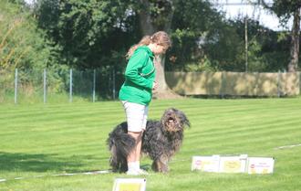 Ebenfalls das erste Mal in der Klasse 1 startete die 14- jährige Ronja Nengelken mit Bordercolli -Großpudelmix „Loki“. Nach 4 Starts bei den Beginnern und der erforderlichen erreichten Punktzahl, war die gespannte Vorfreude auf Klasse 1 groß. Die Zwei starteten hoch motiviert und konzenriert. Loki lief gut „bei Fuß“ und hing nicht hinterher. Lediglich für einen kurzen Moment hing die Aufmerksamkeit im Parcours nach, als das Bedürfnis sich zu kratzen übermächtig wurde. Während da die Prüfungsrichterin noch über einen Punktabzug hinwegsah, musste der Schritt zu viel in der „Mehrschilderübung“ mit 10 Punkten Abzug geahndet werden. Die „T-Schild“ Übung führten die beiden zu schnell durch, nochmal 5 Punkte Abzug. Übrig blieben 85 Punkte, ein „Sehr gut“, 1. Platz (Jugend). Ein sehenswertes Ergebnis mit Luft nach oben.