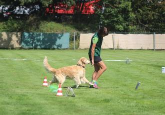 Silke Pook-Sesterhenn startete dieses mal in Klasse 1 mit Golden Retriever Hündin „Charlotte“. Nach 3 erfolgreichen Turnieren bei den Beginnern und der erforderlichen Punktzahl, wagte sie den Aufstieg in die nächste Leistungsklasse. Für die Zwei war es das 4. Turnier im Rally - O. Ein guter Übergang zum Rally-O, nachdem am vorigen Sonntag die THS Karriere von Charlotte endgültig an den Nagel gehängt wurde. Die 10-jährige Hündin hat sichtlich mehr Spaß am Rally- O, bei dem während des Parcours in bestimmten Sequenzen Leckerchen gefüttert werden dürfen. Während Charlotte zum Ende des Parcours mit dem „Rechts laufen“ ihre liebe Not hatte (war sie von Anbeginn ihrer Hundesportkarriere immer links gelaufen), kämpfte ihr Frauchen mit der Sortierung ihrer eigenen Füße. Bei einem Aufgabenschild verschenkten die Zwei in seliger Eintracht Punkte indem sie anstatt „Platz & Sitz“ die Übung mit einem reinen „Platz“ abkürzten. Damit landeten sie mit 80 Punkten, ein „Sehr gut“ auf dem 8. Platz. Unterm Strich bleibt mehr Schilderkunde als Hausaufgabe für Frauchen, um beim nächsten Mal leichter die Schilder zu erfassen.