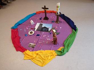 Beim Bauen einer Kirche aus großen Schaumstoffwürfeln stellten wir fest, dass nur alle gemeinsam etwas erreichen beziehungsweise erbauen können. Deshalb schrieben wir unsere Namen auf die Steine und so entstand ein "Kirchenhaus" für und mit uns zusammen.