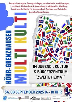 Nach dem großen Erfolg im Jahr 2023 heißt es in diesem Jahr wieder: Bühne frei für gelebte Vielfalt! Am Samstag, den 6. September 2025, lädt das Multi-Kulti-Fest alle Bürgerinnen und Bürger herzlich ein, gemeinsam ein farbenfrohes Zeichen für Offenheit, Toleranz und Miteinander zu setzen. Das Jugend-, Kultur- & Bürgerzentrum „Zweite Heimat“ in Höhr-Grenzhausen wird an diesem Nachmittag zum Treffpunkt verschiedenster Kulturen - mit Musik, Tanz, internationalen Köstlichkeiten und vielen interaktiven Angeboten für Jung und Alt. Ein Höhepunkt des Festes: die interkulturelle Modenschau, die Besucherinnen und Besucher auf eine eindrucksvolle Reise rund um den Globus mitnimmt. Traditionelle Trachten aus aller Welt erzählen ihre ganz eigenen Geschichten - begleitet von landestypischer Musik und spannenden Hintergrundinformationen. Darüber hinaus erwartet Sie ein buntes Bühnenprogramm, kreative Mitmachaktionen, inspirierende Begegnungen und zahlreiche Gelegenheiten, neue Perspektiven kennenzulernen. Ob mit Familie, Freunden oder Nachbarn - kommen Sie vorbei und feiern Sie mit uns die kulturelle Vielfalt unserer Region! Wir freuen uns auf Ihr Kommen - beim Multi-Kulti-Fest 2025!