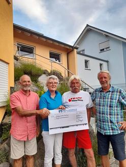 Nach einem guten Frühstück ging es zu Fuß zur Mutter Gottes. Anschließend hat Uli den drei Damen mit dem Auto einige schöne Ecken der Haiderbach gezeigt, aber auch auf das große Waldsterben bei uns hingewiesen. Nach einem kleinen Kaffeplausch bei Mac und Luise mit herrlicher Aussicht auf das Sayntal ging es nach Deesen, wo Günter und Waltraud mit dem Grill warteten. Dabei wurden auch die letzten Spendengelder in Höhe von 650,00 € übergeben. Das war das restliche Geld, welches nach dem Wiederaufbau von Erikas Wohnung noch übrig war. Insgesamt hat unser Verein rund 7.000,00 € an Spenden bekommen und ausschließlich für den Wiederaufbau an der Ahr verwendet. Dafür noch einmal unser herzlicher Dank an Alle, die uns für diese gute Sache unterstützt haben. Wir denken, dass das Geld mehr als gut angelegt wurde. Erikas Wohnung ist, nachdem sie mit ihren 81 Jahren auch nach unserer Arbeit tatkräftig selbst Hand angelegt hat, wieder voll renoviert und bewohnbar. Im Herbst werden wir, nachdem das von Uwe Klein kostenlos eingeschnittene Holz getrocknet ist, mit dem Bau von 10 Eichenbänken für die Ahr beginnen.