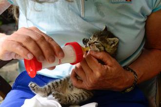 Fütterung der kleinen Wildkatze mit Welpenmilch