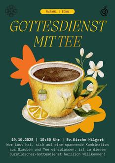 | 10:30 Uhr | Tee-Gottesdienst in der ev. Kirche in Hilgert mit Pfarrer Carsten Schmitt und der ev. Jugend |