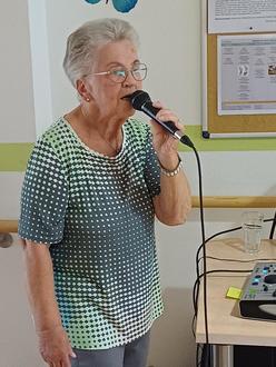 Der Grund: der Förderverein, der es sich zur Aufgabe gemacht hat, alle Bewohner des Hauses zum 9o, 95, 100. Geburtstag einen besonderen Wunsch zu erfüllen, konnte diesmal Frau Helma Bölling zum 90. Geburtstag mit einem besonderen Geschenk überraschen. Frau Bölling, so wurde vom Personal berichtet, ist eine begeisterte Sängerin und trällert im Singkreis jedes Volkslied und alte Schlager fast textsicher mit. So lag es nahe, Frau Bölling, mit Volkslieder und Schlager der 50er und 60er Jahre eine Freude zu bereiten. Als Sängerin gewann der Förderverein Frau Hedi Oster, Ransbach.