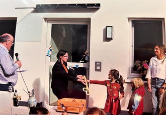 Unser Bauherr Herr Friedrich begrüßte Herrn Pfarrer Manickathan, Herrn Pfarrer Weber, Herrn Bürgermeister Merz, den Verwaltungsrat, den Stadtrat, den Architekten sowie alle, die für die Bauarbeiten verantwortlich waren. Ganz besonders herzlich hieß er die Kinder, Eltern und die Kita Leitung Frau Schenke mit ihrem Team willkommen.