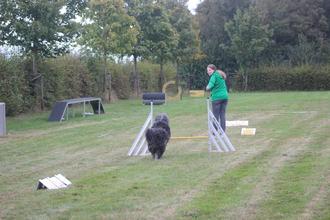 In der Klasse 2 starteten Ronja Nengelken (J)mit Bodercollie Großpudelmix Loki. Die Beschilderung des Parcours in Klasse 2 hatte es in sich. Von einer Drehung zur anderen, über diverse Seitenwechsel des Hundes an der Seite des Hundeführers konnte einem bald schwindelig werden. Ronja und Loki arbeiteten sich tapfer von Schild zu Schild ohne dabei vor lauter Drehung die Orientierung zu verlieren. Doch vor lauter Drehung ging leider auch viel Zeit verloren um zwischen den Drehungen noch auf die Schilder zu gucken. Und dann kam vor lauter Seitenwechsel auch noch ein Doppelkommando. Auch wieder 5 Punkte Abzug. Dennoch blieb Loki den ganzen Parcours über hochkonzentriert an Ronja´s Seite immer auf gleicher Höhe mit ihr und nahm sogar die Hürden einwandfrei. Sie erreichten 85 Punkte, Platz 1 (J).