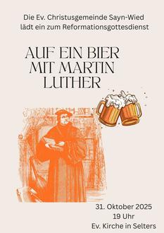| 19.00 Uhr | Gottesdienst zum Reformationsfest im Nachbarschaftsraum in der Ev. Kirche Selters |