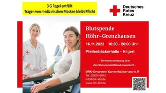 Ihr Blut wird dringend gebraucht! Der DRK Ortsverein Kannenbäckerland möchte Sie zur nächsten Blutspende herzlich einladen. Die kommende Blutspende findet am Mittwoch, 16. November 2022 in der Zeit von 16.30h – 20.00h in der Pfeifenbäckerhalle (Hauptstraße 4) in Hilgert statt. Bitte beachten Sie, dass der DRK Blutspendedienst-West das bestehende Hygiene- und Sicherheitskonzept stetig der aktuellen Lage anpasst. Die Verpflichtung zum Tragen einer medizinischen Maske bleibt weiterhin bestehen. Kindern und Begleitpersonen ist der Zutritt zum Spendelokal wieder gestattet.