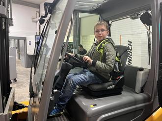 Ebenfalls virtuell konnte eine Runde im Parkour mit dem Gabelstapler gefahren werden. Im Freiluftbereich wurde es dann wieder ähnlicher zum eigenen Hobby. Dort konnte mit Hilfe einer Fernsteuerung ein großer Kranwagen gelenkt werden, um eine große Last von einem Punkt zum anderen zu transportieren.