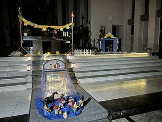 Zu Beginn unserer St. Martinsfeier versammelten sich Eltern, Kinder, das Erzieherteam sowie unser Diakon Markus Seibel in der festlich geschmückten Kirche St. Markus. Die Kirche wurde nicht nur durch Lichterketten und bunten Lichterspots erleuchtet, sondern auch von den wunderschön selbst gestalteten Laternen.