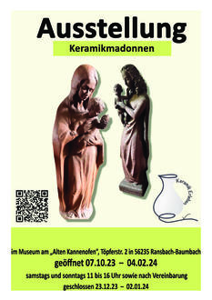 Der Verein Keramik Erleben e.V. Ransbach-Baumbach erinnert an die Ausstellung „Keramikmadonnen“ von Künstlern aus dem Kannenbäckerland, die im Museum am Alten Kannenofen in Ransbach-Baumbach, Töpferstraße 2 zu besichtigen ist.