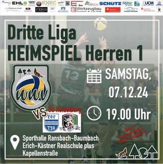 Die Westerwald Volleys laden zum Heimspiel in der Dritten Liga! Am Samstag, den 07.12.24, treffen die Westerwälder auf die SG Heidelberg, die als Tabellenverfolger einen direkten Angriff auf die oberen Plätze startet. Die Heidelberger haben bereits drei ihrer Spiele im Tiebreak entschieden - ein klares Zeichen für ihren unerschütterlichen Kampfgeist und ihre Nervenstärke. Die Westerwald Volleys gehen mit vollem Selbstvertrauen in das Spiel, wissen jedoch, dass der Gegner alles geben wird. Kommt vorbei und feuert unser Team an! Das Spiel beginnt um 19.00 Uhr in der Sporthalle Ransbach-Baumbach (Kapellenstraße). Seid dabei! (Eintritt 4 € für Erwachsene, Jugendliche und Kinder frei)
