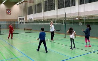 Im Zeitraum von 16 - 19 Uhr durften sich die Kinder und begleitenden Eltern unter dem Motto „Sport machen, Verein finden… mit der Ganztagsschule!“ in einem aufgebauten Geräteparcours, beim Badminton, Karate oder im Gerätturnen ausprobieren. Die Schwimmabteilung stellte sich mit einem Staffelparcours vor und beantwortete Fragen zum Schwimmtraining und Schwimmkursen im Verein. In der angrenzenden Gerätehalle bestaunten die Kinder das Können der Turnerinnen und waren begeistert über die Vielzahl der vorhandenen, feststehenden Turngeräte, an denen im Verein das Breiten- und Leistungssportturnen für Mädchen täglich in verschiedenen Gruppen und Altersklassen betrieben wird. Die Eltern informierten sich über weitere Angebote und Trainingszeiten und freuten sich, dass mit dieser Aktion Bedenken ihrer Kinder über das Sporttreiben im Verein ausgeräumt und erste Kontakte geknüpft werden konnten.