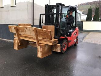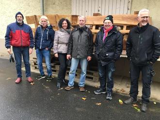 Nachdem 10 massive Eichenbänke und ein Tisch von unseren Mitgliedern Günter, Mac, Rudolf, Erich und Uli und dem Versorgungsteam unserer fleißigen Damen Waltraud, Annelie und Anke fertig gebauten waren, stand der Transport mit zwei großen PKW-Anhängern und die Übergabe an Vertreter der Gemeinde Heimersheim an.