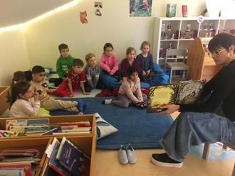 Nach einer kurzen Vorstellung der Bücher im Morgenkreis hatten alle Kinder die Möglichkeit, sich für ihre Lieblingsgeschichte anzumelden. Das Interesse war groß, und die Kinder lauschten am Freitagvormittag in gemischten Gruppen gespannt ihren Favoriten.