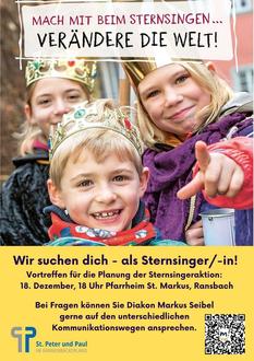 Wir suchen Eltern und Jugendliche (ab 16), welche die Jugendlichen betreuen und Kinder, die als Sternsinger, -innen unterwegs sind. Infos gibt es bei Diakon Markus Seibel auf den unterschiedlichen Wegen