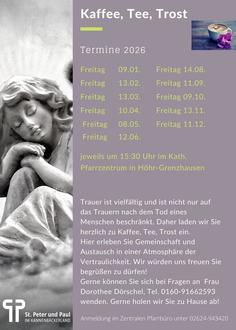 | 19:00 Uhr | Vorbereitungstreffen Erstkommunionwochenende Kirchähr mit den Katechten im Pfarrhaus Höhr-Grenzhausen |