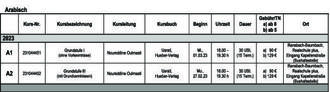 | Kursgebühr: | 99 € ab 8 TN, 144 € ab 5 TN |