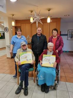 So konnten Herr Berthold Steudter und Frau Magdalene Heinzberger vom Vorstand der Leiterin des sozialen Dienstes, Frau Claudia Kircher, und in Vertretung der Bewohner, Frau Grundmann und Herrn Sura, dies besondere Geschenk übergeben. Gleichzeitig wurde dem Förderverein eine Spende von € 80 aus dem Erlös des „ Bastelstandes „ am Adventsmarkt des Hauses von Frau Kircher überreicht. Der Förderverein sagt : Herzlichen Dank!