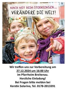 | 16:00 Uhr, | Vorbereitungstreffen Sternsinger |