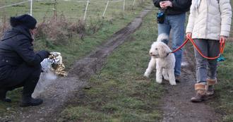 Pünktlich zur Dämmerung ging es am vergangenen Samstag vom Hundesportverein Ransbach-Baumbach e.V. Gelände rüber in Feld zur Nachtübung. Zu Beginn erklärte Trainerin Anne Weber die Strecke und die einzelnen Stationen. Mit genügend Abstand zu den folgenden Hund-und Halter- Teams startete Labrador Welpe „Monty“. Nach und nach erkundete er zielstrebig die einzelnen Stationen. Dabei ließ er sich weder von den knisternden Feuerchen an den Stationen irritieren, noch Rasseln, scheppernden Blechdosen, knisternden Tüten, Stirnlampen, komische Gestalten auf Parkbänken oder am Straßenrand und Menschen mit Schirm, langem Mantel oder Hut. Dacklewelpe „Fiete“ tat es seinem Welpenkumpel gleich, schien die Nachtübung eher als sensationelles Abenteuer zu sehen. Das sind die besten Voraussetzungen für den Alltag. Furchtlos und entspannt vorbei an allen möglichen Geräuschen, die im Alltag so vorkommen. Völlig egal, ob Tag oder Nacht. Steht der gelbe Sack bei Tageslicht noch harmlos am Gartenzaun, wirkt er bei Dunkelheit, am Ende noch durch Wind zum Leben erweckt, für einzelne Hunde plötzlich furchteinflößend. Oder wird womöglich noch als Gefahr für Hund und Halter angesehen und muss verbellt werden. Darauf zielte die Nachtübung ab und konnte von allen Hund- und Halter- Teams erfolgreich absolviert werden.